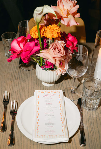 Paige and Mark’s wedding at Nodo Liberty was a celebration that perfectly blended chic style with effortless fun. From the moment guests arrived, the atmosphere was vibrant and full of personality — thanks to playful, custom graphics that brought their vision to life in every detail. The food, true to Nodo’s reputation, was nothing short of incredible — fresh, flavorful, and beautifully presented. As the night went on, the energy only grew stronger, with an amazing DJ keeping the dance floor full and the vibes high. It was the kind of night that felt perfectly “them” — warm, joyful, and unforgettable from start to finish.